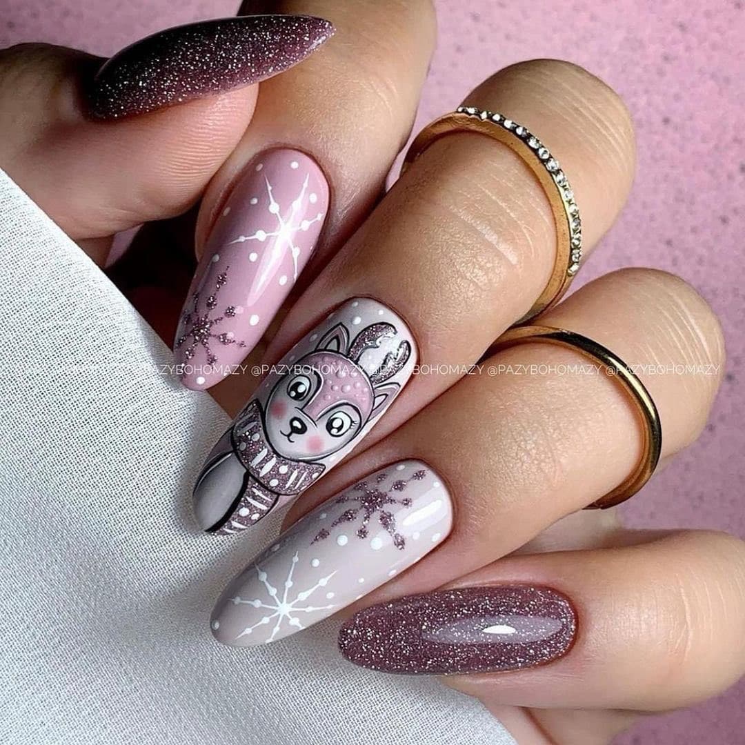 Обратите внимание, если вы хотите узнать больше о красивом вязаном маникюре, как его делать и идеях дизайна. Зимний пудровый маникюр напоминает новогоднюю игрушку