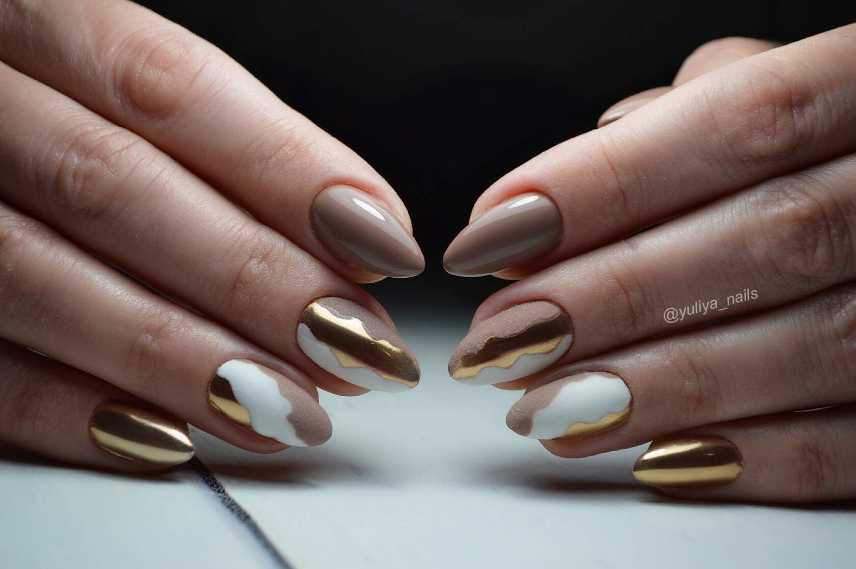Не менее привлекательной альтернативой серебру является золото. Он красивый и праздничный, способен сочетаться с любым цветом и может использоваться для объемного рисунка.