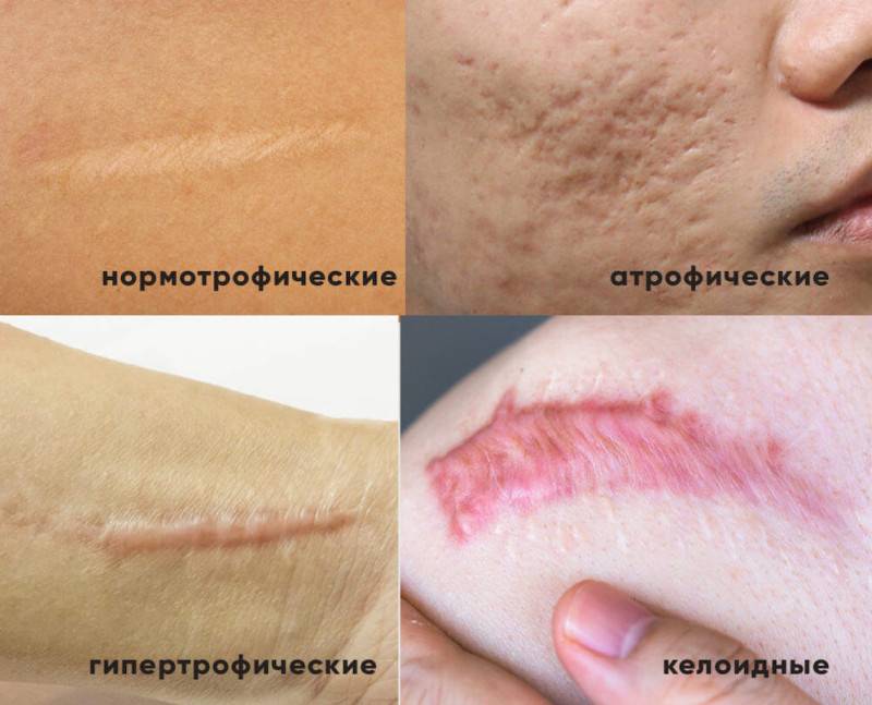 Виды шрамов по состоянию рубцовой ткани: