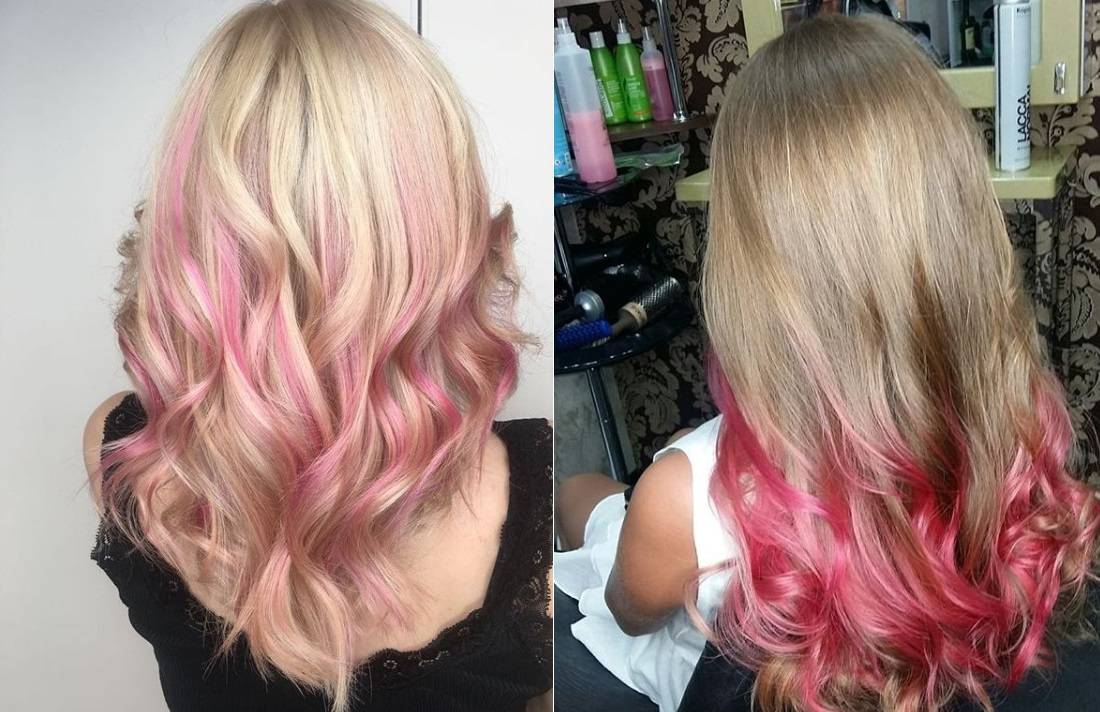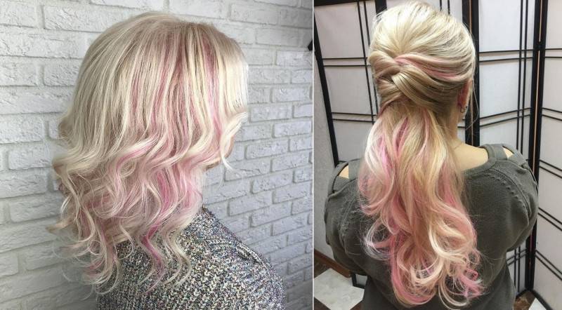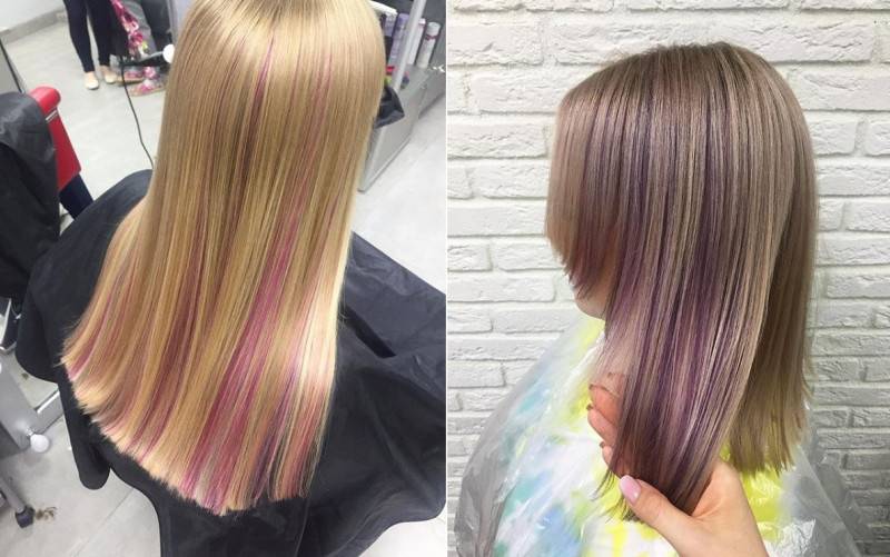 Женщинам, желающим показать с помощью прически свою индивидуальность, мастера предлагают выделить отдельным цветом несколько прядей. Вариант выделения локонов не ограничивает клиентов в цветовой гамме. Доступна покраска волос в любой предпочитаемый цвет, но особо трендово смотрятся локоны ярко-розового, фиолетового и изумрудно-зеленого оттенков.