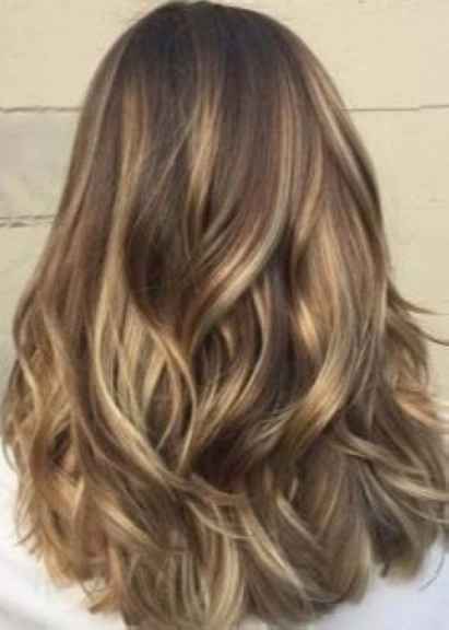 - Самая популярная окраска на средние волосы – техника балаяж. Окрашивание волос происходит путем хаотичного высветления прядей. Корни волос не затрагиваются и остаются в прежнем цвете. Благодаря хаотичности волосы выглядят выгоревшими. Важным преимуществом метода балаяж является придание объема за счет неравномерного цветового покрытия. Балаяж отлично подходит обладательницам многослойной стрижки в виде лесенки или каскада.