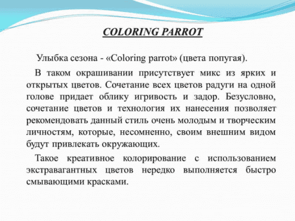 Колорирование относится к доступным, простым и максимально щадящим способам покраски