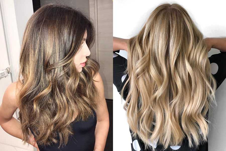 Балаяж. Ещё одна техника, создающая эффект выгоревших локонов. В этом случае акцент делается на контрасте основного цвета и кончиков. Блондинки делают переход от натурального блонда к оттенку крем-сода. Шатенкам и брюнеткам подойдёт модный вариант «око тигра» – тёмные оттенки переходят в золотистые, карамельные, янтарные переливы.