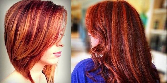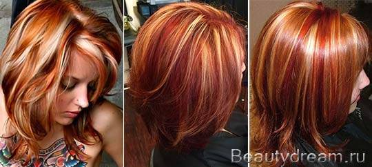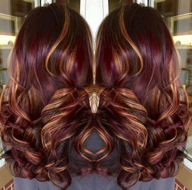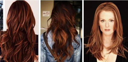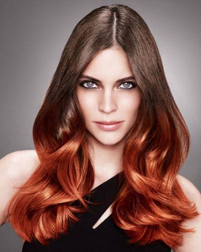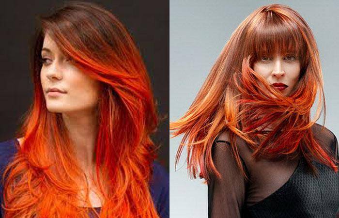 Чтобы освежить темные волосы, сделать их более заметными рекомендуется использовать колорирование или мелирование с использованием ярких цветов, например, рыжий или красный. Далее предлагаем посмотреть фото рыжего колорирования на темные волосы.