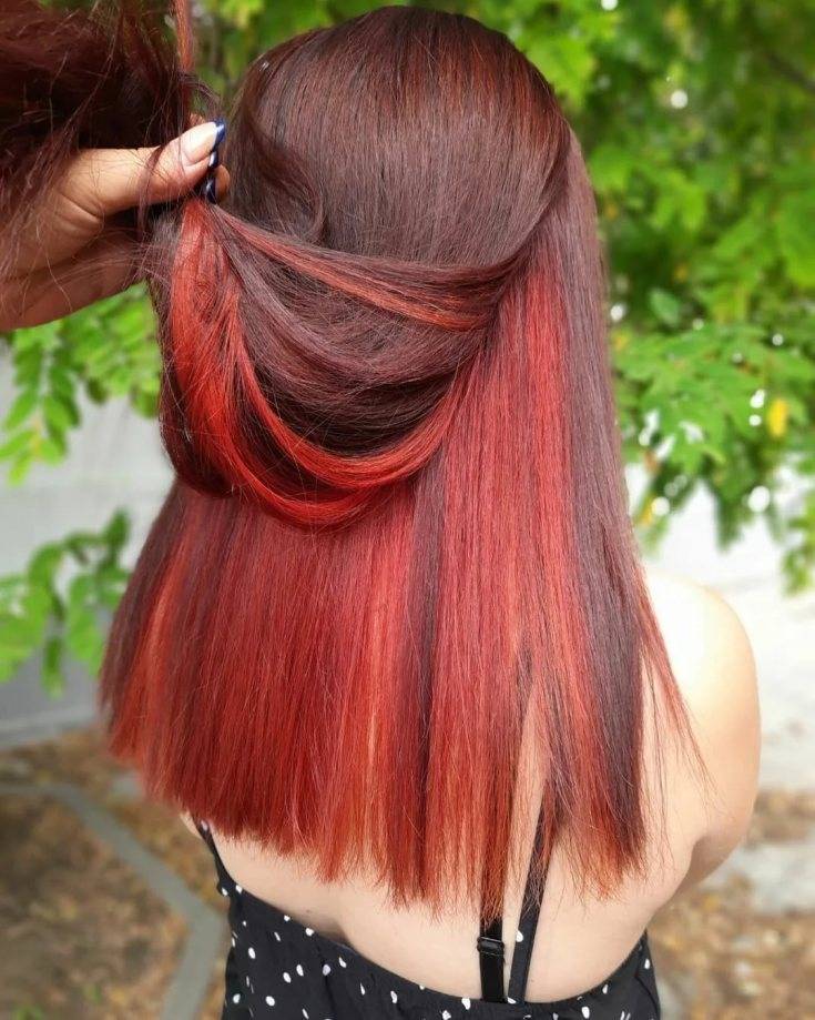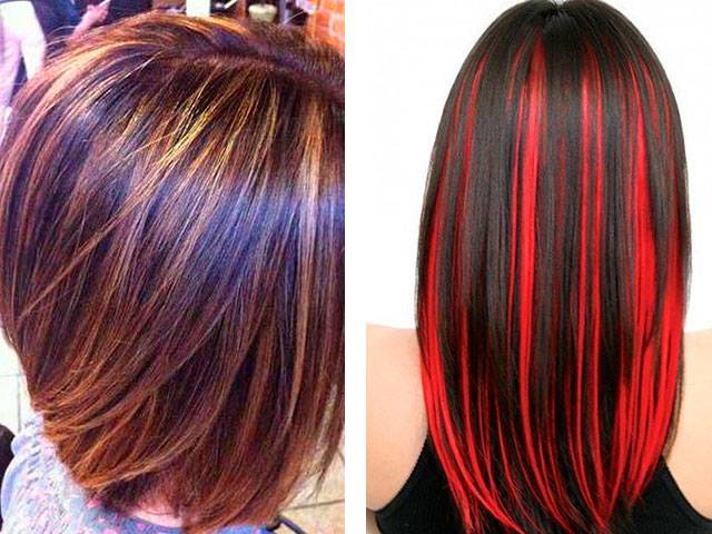 Если вы любите привлекать к себе внимание, можете тонировать прядки в рыжие или красные тона. Но не забывайте, что чем дальше вы отойдете от базового цвета, тем искусственнее выглядит прическа. Если же ваши волосы совсем черные, можете их частично осветлить и уже потом наложить другие оттенки