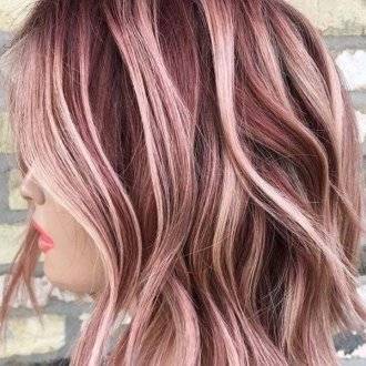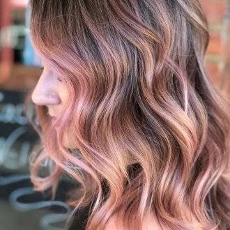 Палитра включает в себя лиловые, золотистые, пастельно-розовые тона, металлический эффект образуется в результате соединения холодной и теплой гаммы. Такое сочетание предпочитают натуральные блондинки, потому что оно красиво ложится на светлые волосы, брюнеткам необходимо сначала произвести мощное осветление.