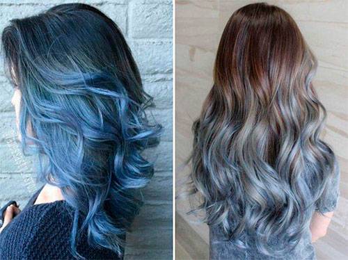 Гармоничны для обладательниц холодного цветотипа. Помимо классики, платину можно сочетать с зелеными и синими оттенками, в частности у молодежи востребованы яркие кончики. Пепельный и платиновый удачно вписываются в окрашивание «морозный каштан».