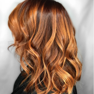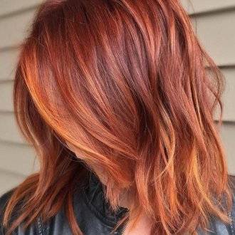 Удачное решение для обладательниц теплого цветотипа с любой прической, подобная расцветка смотрится естественно и все еще держится в тренде. Как вариант – можно подчеркнуть пряди золотистыми бликами, добавить к медной темно-розовую или красную тональность, шоколадную либо каштановую.