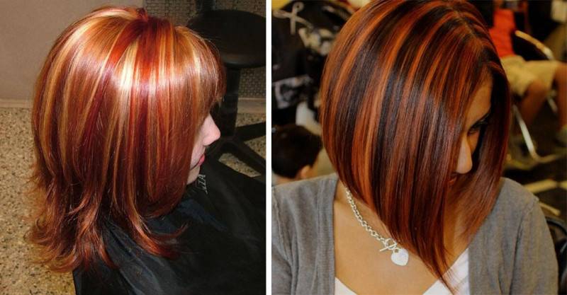 - В зависимости от того, в каком порядке будут расположены окрашенные локоны, их оттенок может меняться при различном освещении.