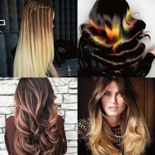 На длинные волосы в 2018 году стилисты предлагают применять новую технику окраски splashlight. Этот приём можно разнообразить, сделав не прямые горизонтальные полосы, а расположить их клином, сходящимся сзади. Яркую натуру не испугают контрастные, кричащие тона. А романтичной особе с волосами цвета блонд подойдёт этот приём с использованием мягкого розового блика.