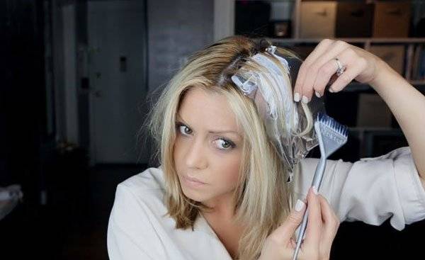 - покраска должна начинаться с челки, после чего выполняется по остальным волосам;