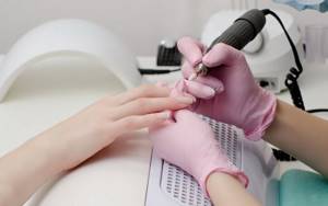 - Заусеницы удаляются специальным механическим приспособлением, чтобы не травмировалась кожа рук.
