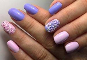 Этим летом актуально сочетание в маникюре лаков двух и более цветов. Это могут быть контрастные сочетания или разные тона одного цвета. Двухцветный маникюр выполняется по принципу французского или лунного маникюра.