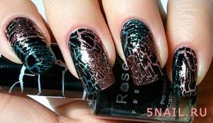 - Паутина. Маникюр с растрескивающимся покрытием образует на ногтях интересный узор из маленьких трещинок, внешне напоминающих паутину. Еще одно название такого нейл арта- Spider- кракелюр.