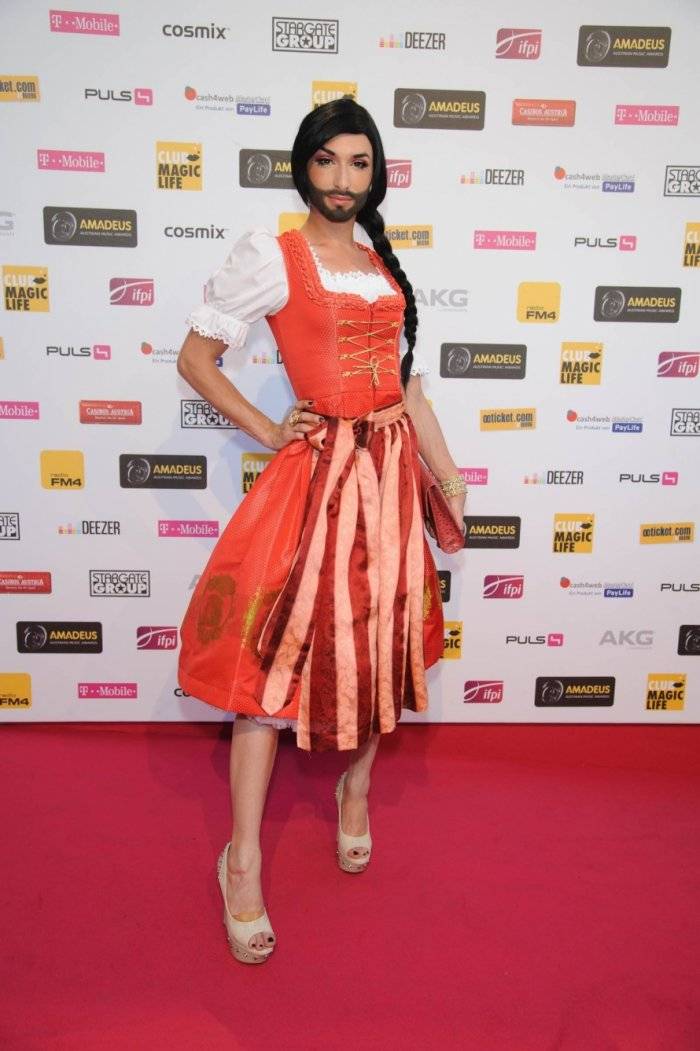 Разразился грандиозный скандал. Ярые защитники моральных ценностей спустили всех собак на певца. Он, потирая бородку и хлопая густо накрашенными ресницами, провозгласил себя защитником природных проявлений в человеке. И заявил, что операция по смене пола- последнее дело. До и после фестиваля Евровидение он останется бородатым геем в женском одеянии. А одевается Conchita Wurst очень провокационно, судите сами по таким примерам: