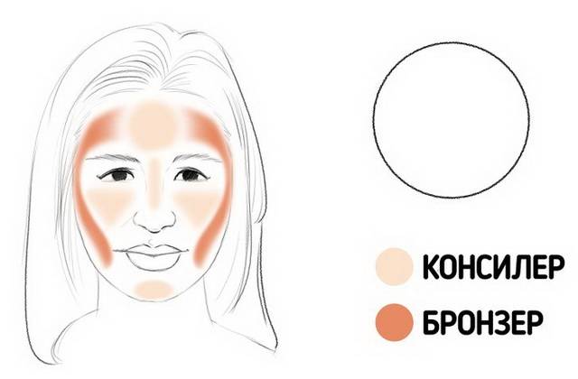 Круглое лицо. Сделать контурирование круглого лица по схеме достаточно просто, главное помнить, что основная задача – сузить его, придав более овальную форму.