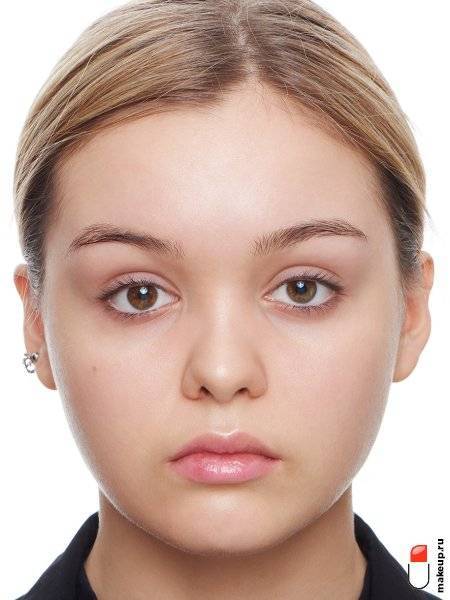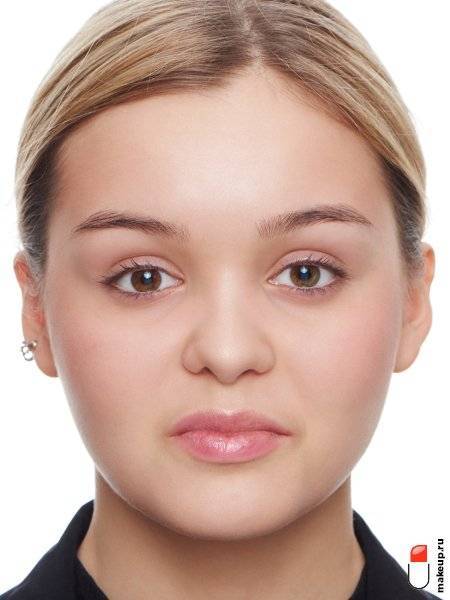 Это одно из самых сложных для контуринга лиц. Связано это с тем, что рельеф приходится рисовать заново, что может быть сильно заметно. Таким людям коррекцию можно использовать только для фото или мероприятия с приглушённым светом. В дневное время макияж будет смотреться тяжеловато и странно.
