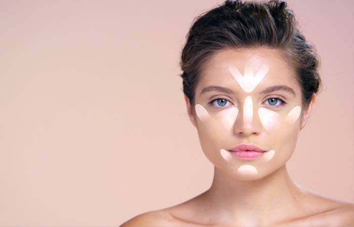 В процессе нанесения макияжа виски и скулы выделяют. Это визуально делает лицо более симметричным и аккуратным.