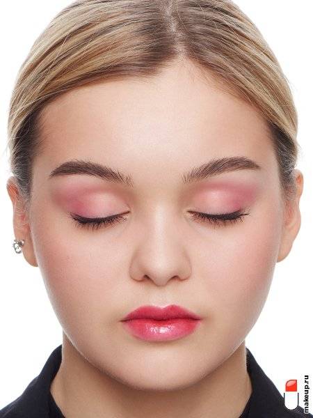 8 Румяна оттенка фуксии и самого светлого розового цвета в палитре нанесите на веки в качестве теней: темные положите в складку века, а светлый растушуйте по центру. Макияж получится по-весеннему свежим.