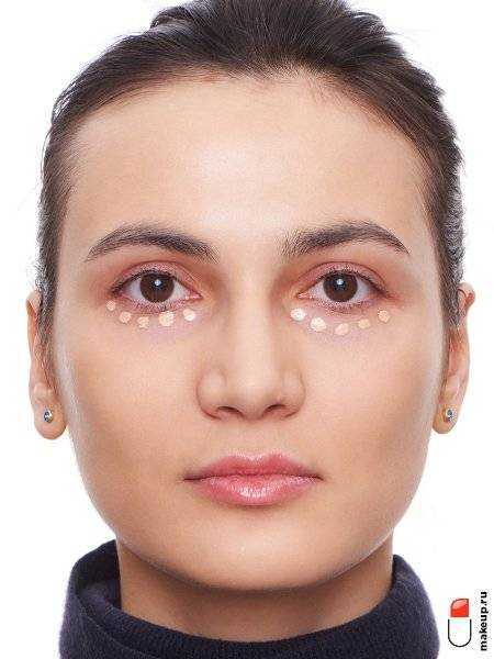 1. увлажни область вокруг глаз. Нанеси крем под глаза на кожу вокруг глаз для того, чтобы насытить ее влагой, убрать припухлости и свести к минимуму проявление складок.2. выровняй тон кожи. Нанеси на лицо праймер, базу под макияж и тональный крем. Это также защитит ее от пересушивания и подскажет, в каких местах стоит использовать дополнительное покрытие – консилер.3. нанеси консилер под глаза. В то время, как консилер, зачастую, содержит масла, которые приводят к “Скатыванию” продукта в складках кожи, ты можешь этого избежать, если все сделаешь правильно. Нанеси его в форме треугольника двигаясь от внутренних уголков глаз к вискам через яблочки щек. Затем растушуй его с помощью влажного спонжа.5. замаскируй неровности кожи. Мы все же настаиваем на том, что точечный метод маскировки мелких недостатков лучше, чем покрывать все лицо толстым слоем тонального крема. Синтетической кистью точечно нанеси консилер на прыщики и растушуй подушечками пальцев похлопывающими движениями.6. нанеси полупрозрачную пудру. Используя пушистую кисть для пудры, нанеси на все зоны, где использовала консилер тонкий слой полупрозрачной пудры (Translucent Powder.7. “Запеки” мейкап. На все зоны, которые мы обычно подсвечиваем хайлайтером (лоб, зона под глазами, спинка носа, зона под скулами) нанеси густой шар финишной пудры с помощью влажного спонжа. Оставь пудру в таком состоянии на 5-10 минут, чтобы пудра хорошо соединилась с другими шарами косметики. Совет: лучше смочить спонж спреем – фиксатора макияжа для более стойкого эффекта.8. стряхни лишнюю пудру. Используя ту же пушистую кисть, убери излишки пудры легкими круговыми движениями, как ты обычно припудриваешь лицо.