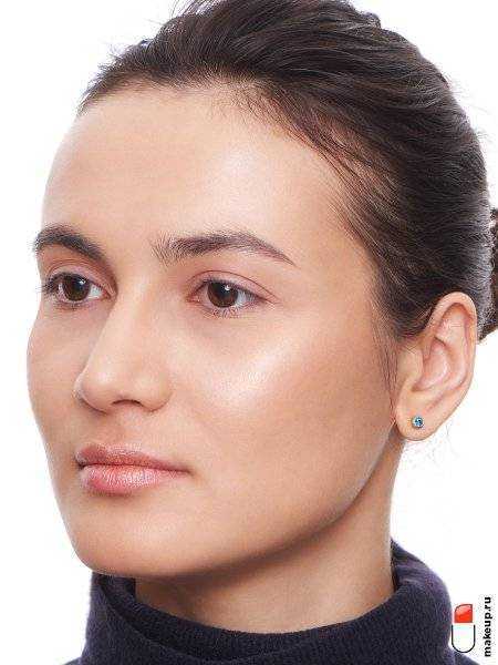 - Хайлайтер следует распределить в центре лба, подбородка, а также в области вокруг глаз.