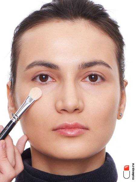 4 Наберите пудру пушистой кистью и пройдитесь по зоне под глазами и подвижным векам — теперь вам не нужна специальная база под тени: пудра обеспечит макияжу глаз необходимую стойкость. Кисть должна быть достаточно плотной — тогда покрытие получится легким.