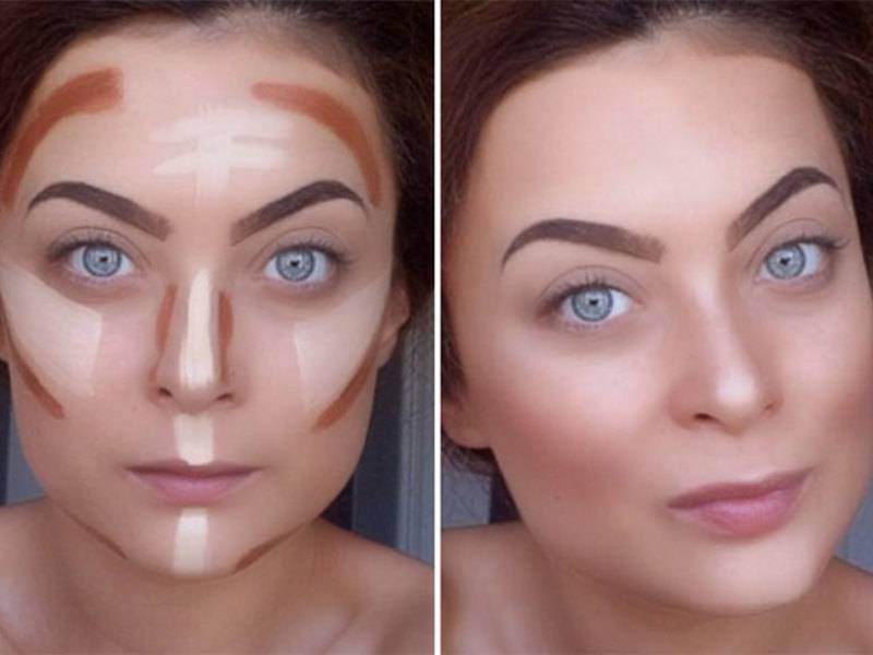 Если описывать процесс контуринга, то вся суть этого метода состоит в том, чтобы затемнить или, наоборот, высветлить определенные части лица, при помощи игры света и тени добиваясь нужного объема, выразительности и формы. Правильно выполненный контуринг создает эффект худого лица идеальной формы с изящными линиями скул, точеным подбородком и носиком.