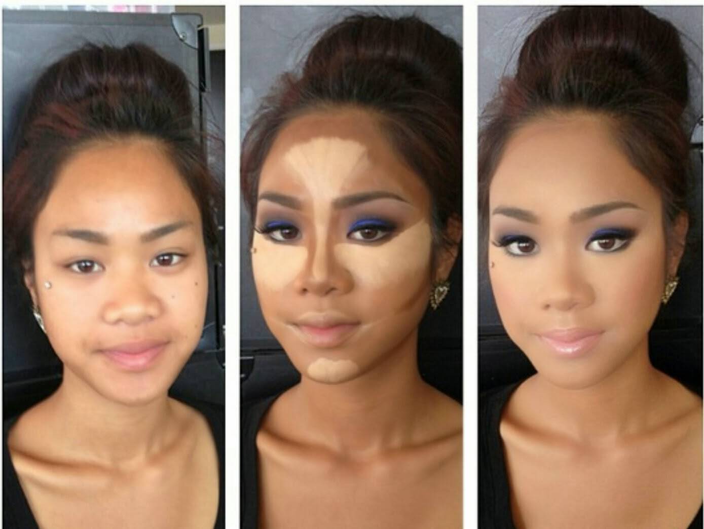 Фото до и после коррекции носа макияжем