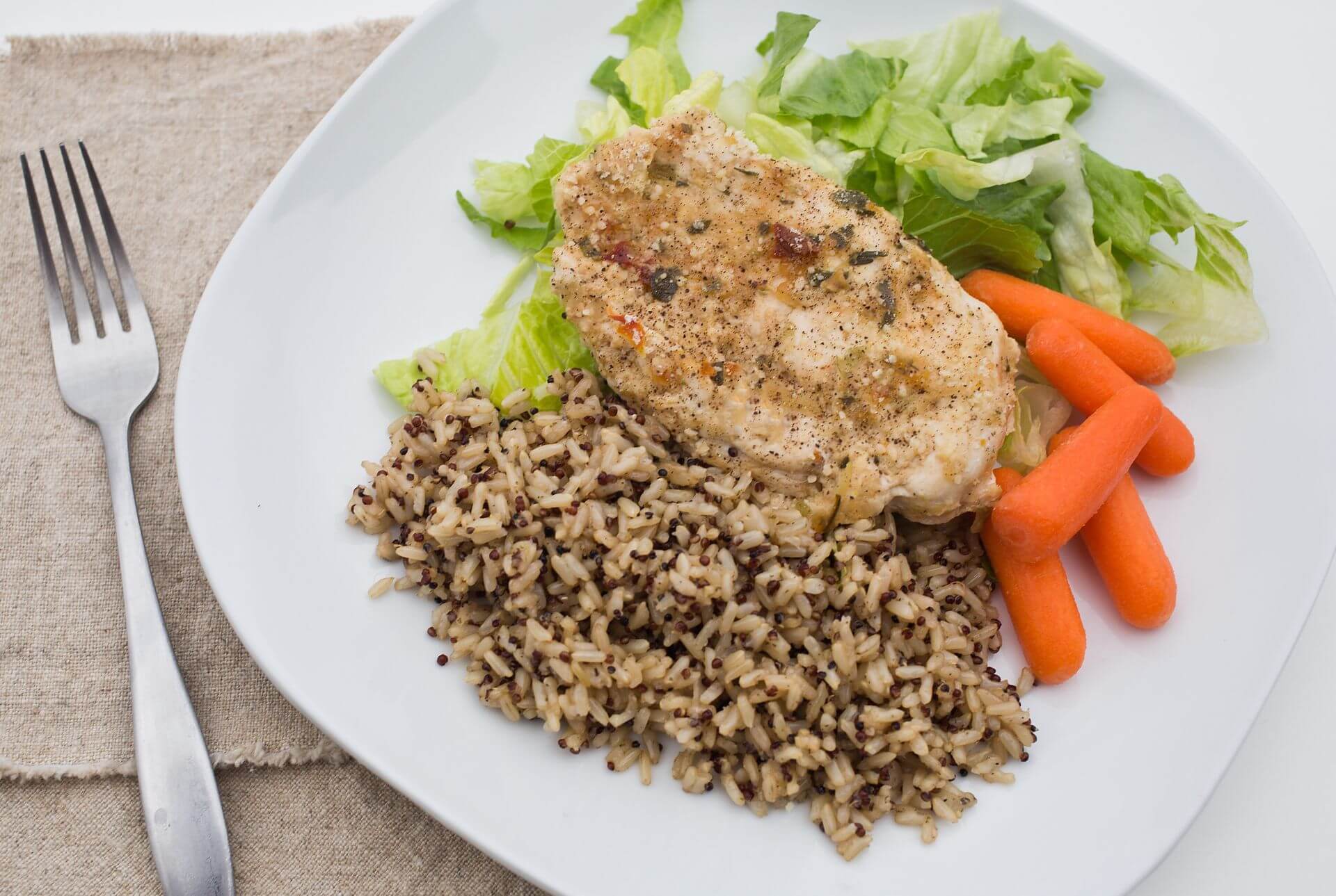 - обед – 100 г овощного салата с оливковым маслом, соком лимона, паровая рыба (100 г), коричневый рис с приправой на основе красного острого перца (150 г);