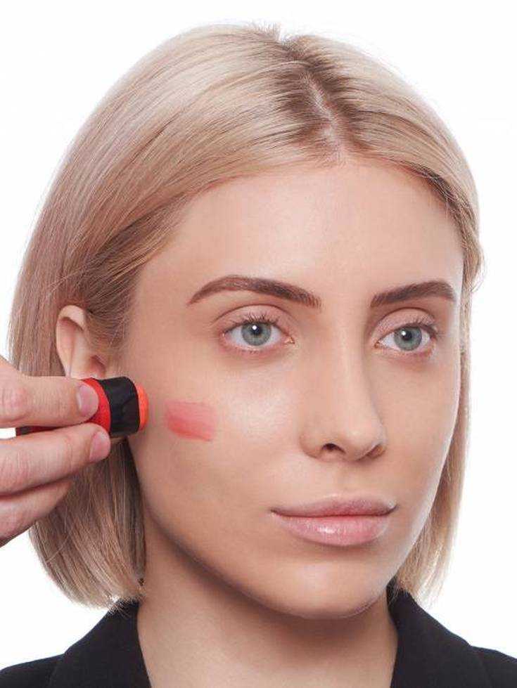Чтобы создать эффект лифтинга, необходимо использовать румяна оранжевого оттенка в верхней части скул. Большое значение слабый пол уделяет стробингу или высветлению кожи. Для этого хайлайтером выделяют скулы, центральную часть носа, внешний угол бровей, углубление над верхней губой.