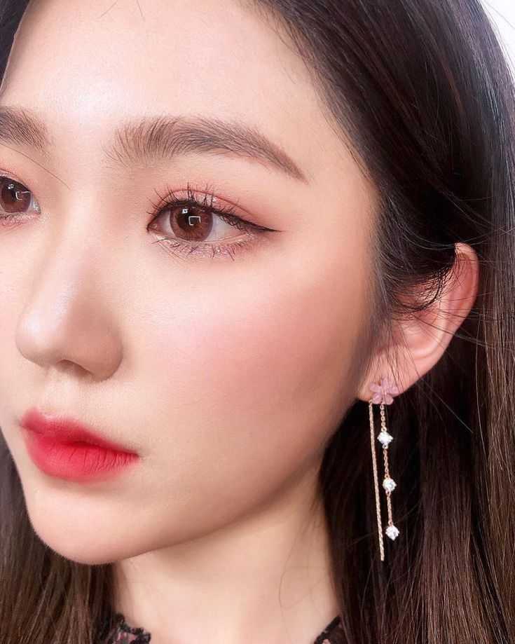 Основной нюанс корейского макияжа состоит в сочетании гладкости кожного покрова с фарфоровым оттенком. Кореянки наносят средства таким образом, что кожа кажется влажной и как будто немного прозрачной.