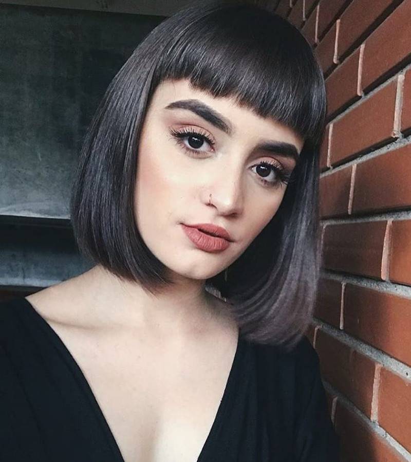 Короткую градуированную челку лучше всего комбинировать со стрижкой каре или боб. На кучерявых волосах ее делать не стоит. Отказаться от такого варианта стрижки придется и девушкам с акцентированными морщинами на лбу, а также тем, у кого округлые брови.