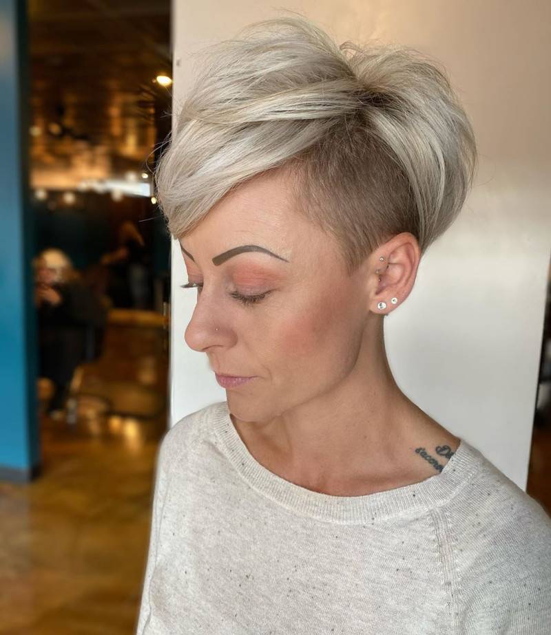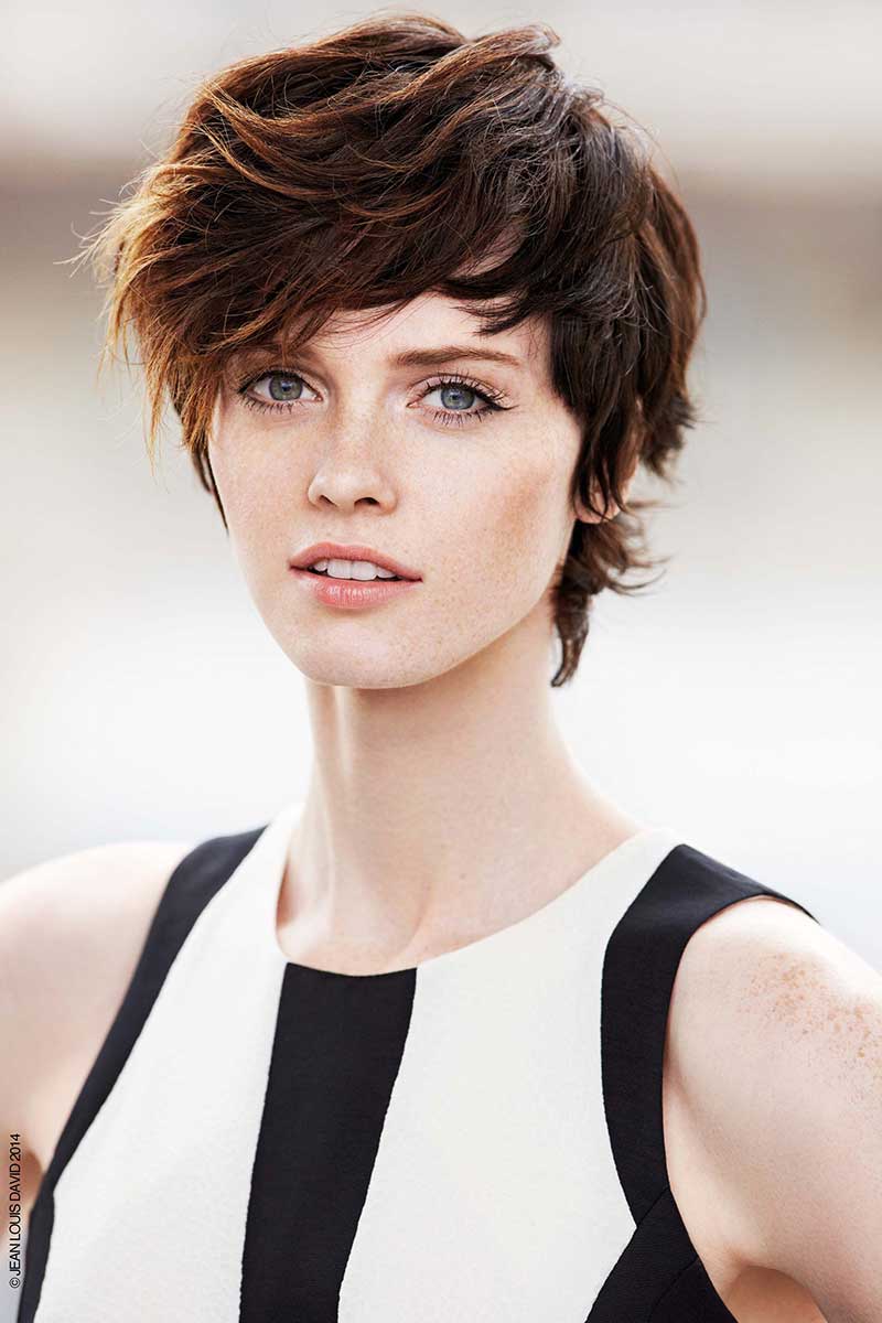 Следует также обращать внимание на ширину лба, скул и щек. При необходимости некоторые нюансы внешности можно скрыть челкой или увести от них внимание при помощи этого элемента короткой стрижки.