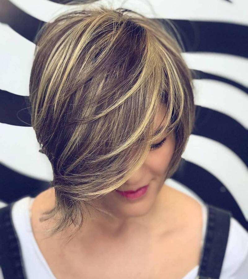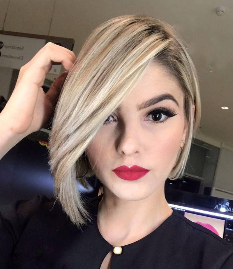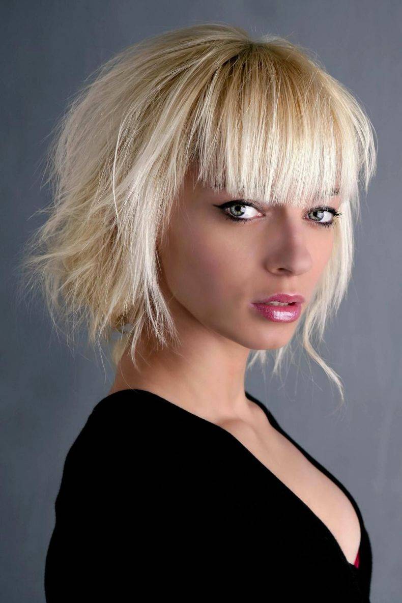Если прическа короткого типа или ультракороткая, то лучше всего делать асимметричную челку, когда передние пряди представляют треугольную форму или арку, при укладывании присутствует гладкость и ровные линии.
