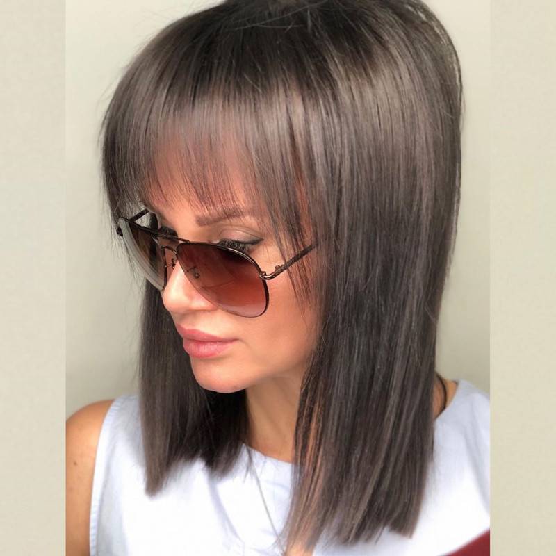 Важно! Выбирая причёску с чёлкой для средних волос, следует помнить, что в таком случае придётся более тщательно следить за чистотой прядей и регулярно, не менее 1 раза в месяц, корректировать срез, поддерживая заданную форму.