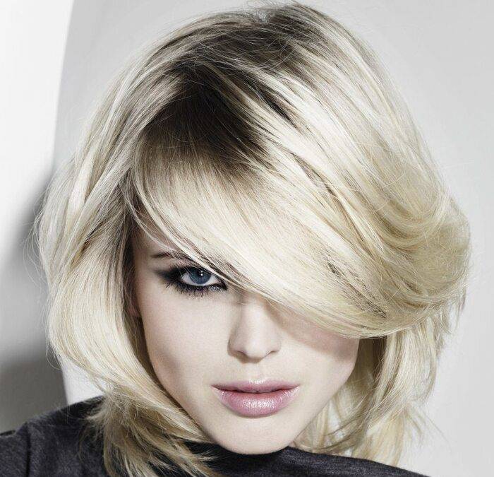 Косая линия уравновешивает пропорции прямоугольного и квадратного лица. Она уместна на длинных и коротких волосах. Вьющиеся волосы не будут терпеть такую форму, они быстро лохматятся. Поэтому ее нужно стричь на прямых волосах.
