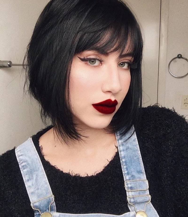 Благодаря прямой рваной челке главный акцент попадает на глаза и брови