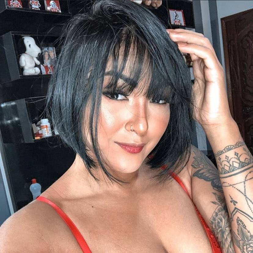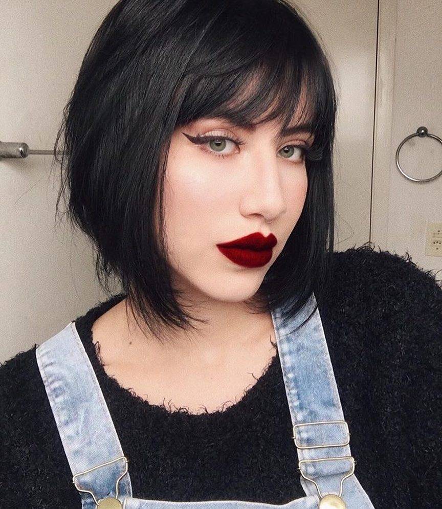 - Короткая челка может быть асимметричной или со рваными краями в зависимости от стиля и образа жизни девушки.