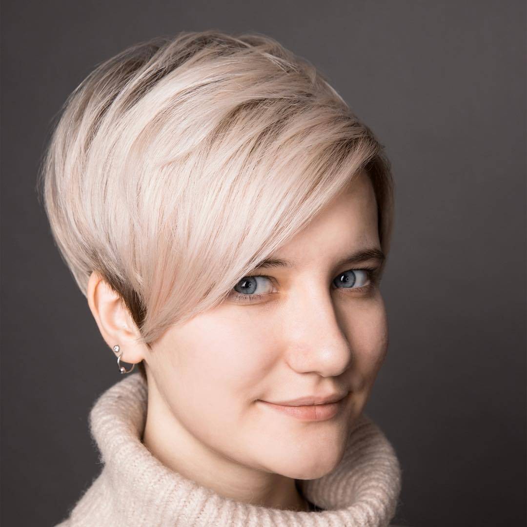 Следует также обращать внимание на ширину лба, скул и щек. При необходимости некоторые нюансы внешности можно скрыть челкой или увести от них внимание при помощи этого элемента короткой стрижки.