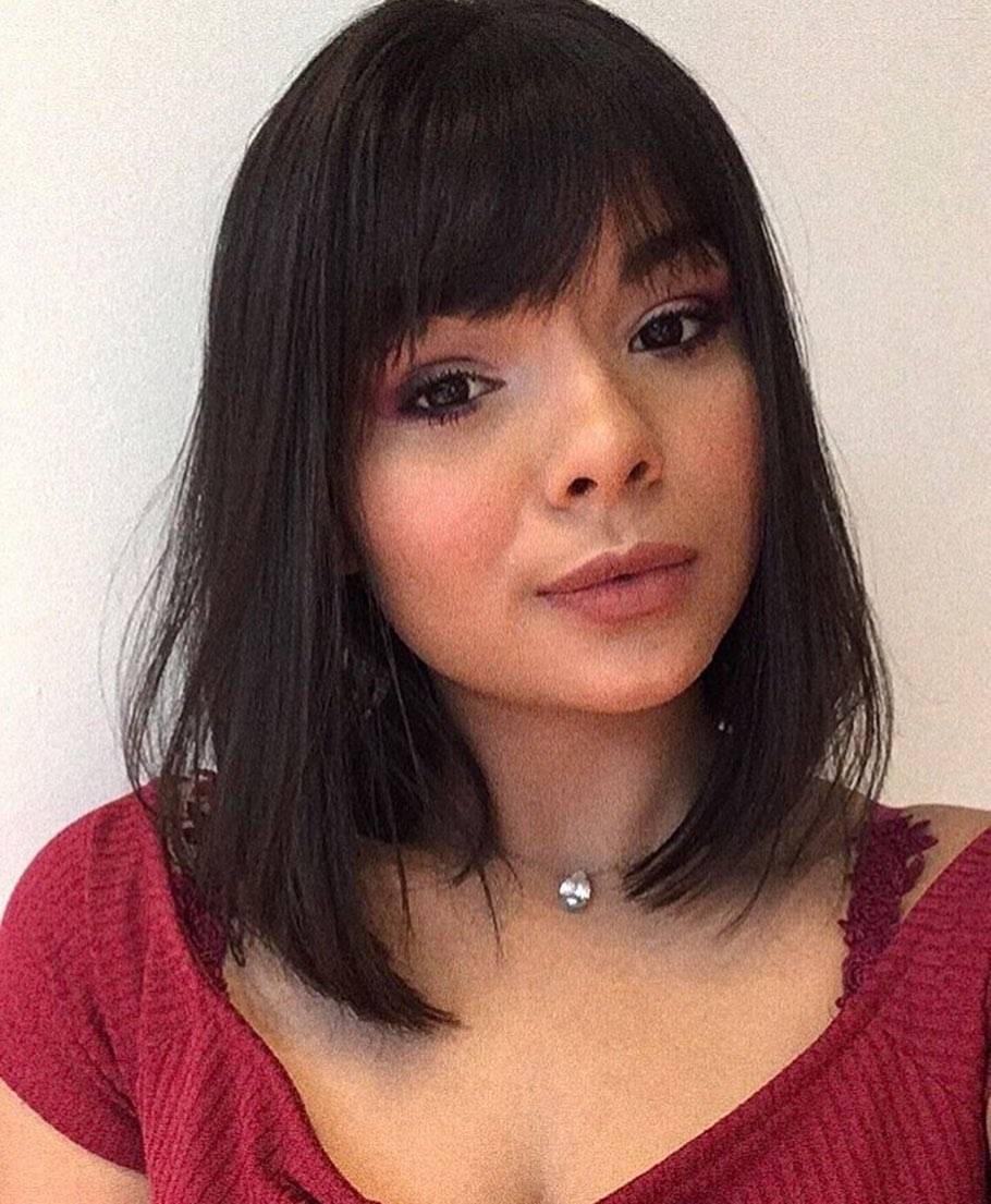 Однако такой вариант зачастую смотрится очень смело и свежо, например, так называемый «бебибэнг», то есть прямая челка, нижний край которой находится строго выше бровей.