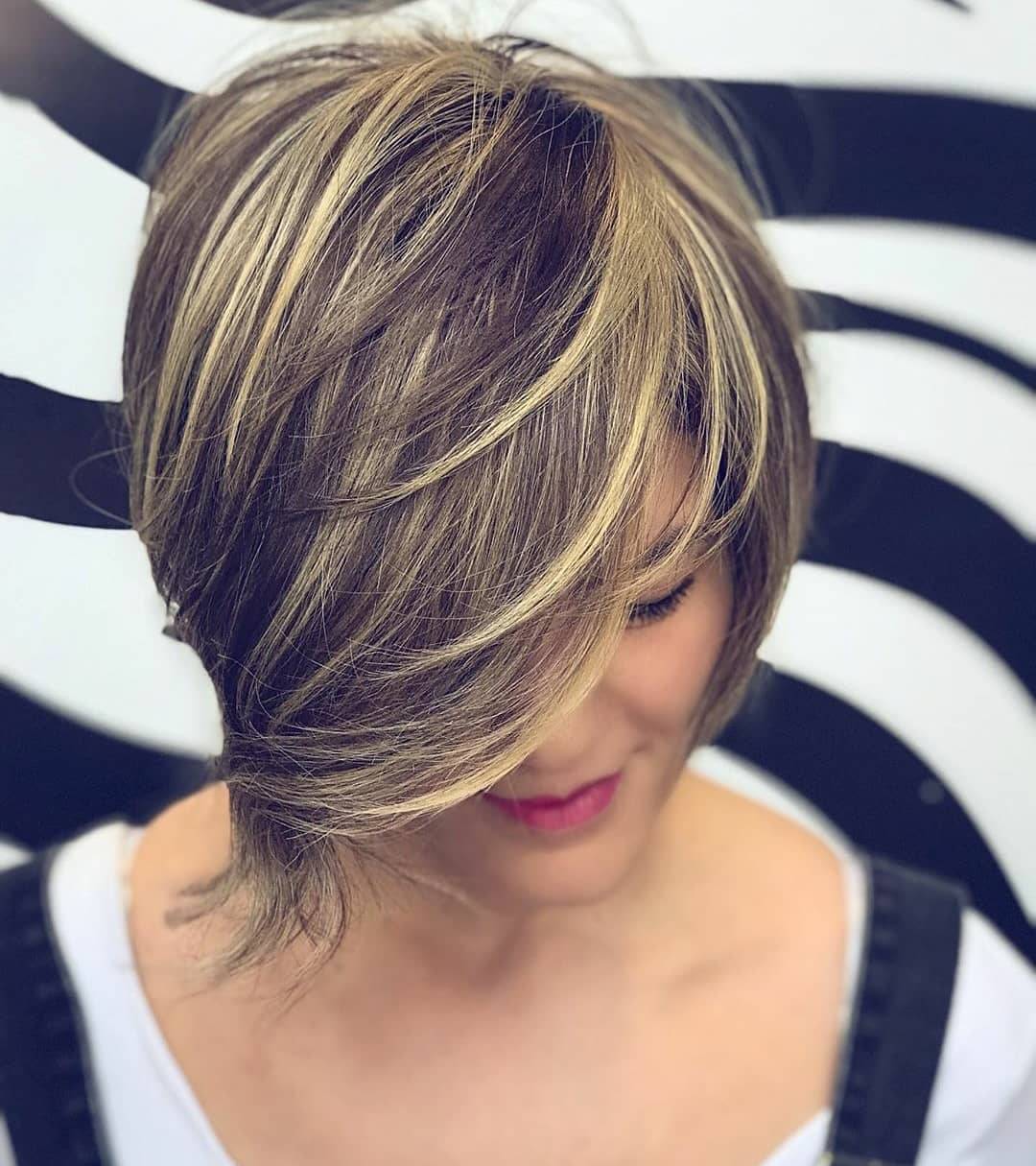 - Для данной стрижки отлично подходят филированные и скошенные прядки на лбу.