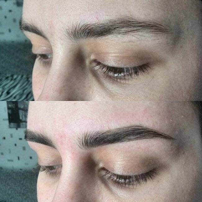 На ссадинах, ранах образуется довольно грубый струп, в случае микроранок, как при волосковой технике, при правильном уходе образуется тонкая пленочка. Образуется такая пленка приблизительно на 5-6 сутки. При этом кожа надбровных дуг чешется.
