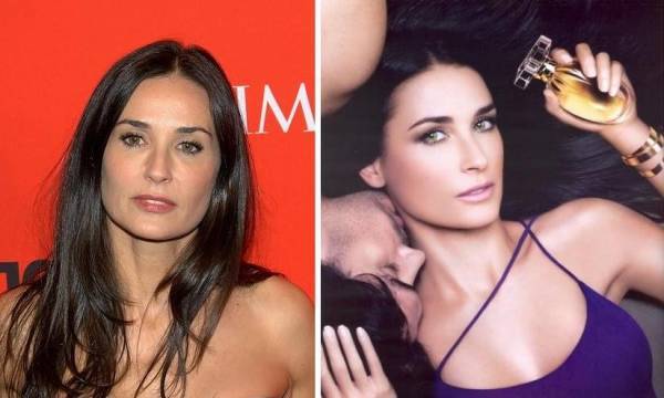 Обратите внимание на второе фото Деми: светлый центр и темные очертания зрительно выравнивают и смягчают квадратную форму лица