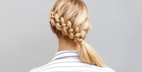 Процесс плетения квадратного колоска напоминает технику «рыбий хвост», однако внешний вид прически сильно отличается. Ее принцип: чередуйте плетение сверху и снизу. Начните плести по технике «рыбий хвост». С каждой стороны отделите тонкую прядку и перекидывайте в противоположную сторону сверху. Повторите шаг, но в этот раз перекиньте прядку в противоположную сторону снизу. Продолжайте плести по этому принципу до конца и результат зафиксируйте резинкой.