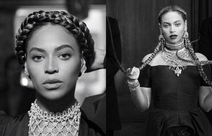Роскошная Бейонсе подчеркивает идеальные черты лица колоском вокруг головы, а также классическими длинными косичками.