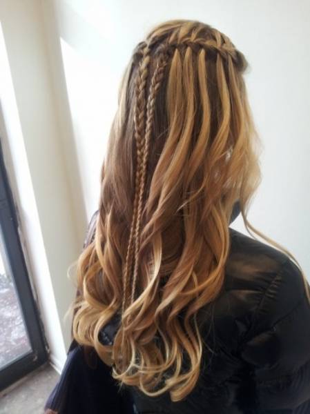 Косоплетение разнообразит привычный, надоевший образ. Те, кто любят ходить со свободными волосами, не останутся равнодушными перед вариацией «Водопад». Эта прическа шикарно смотрится как на прямых, так и на кудрявых волосах.