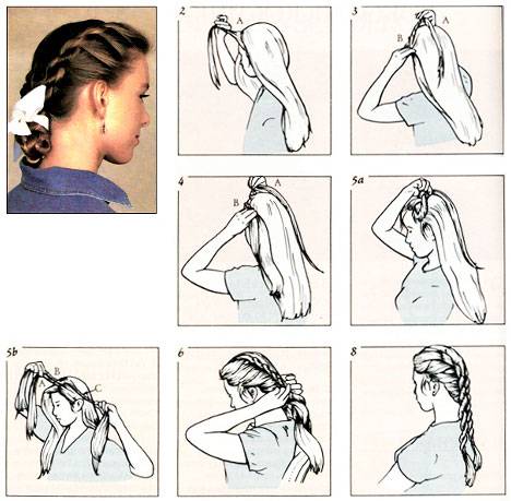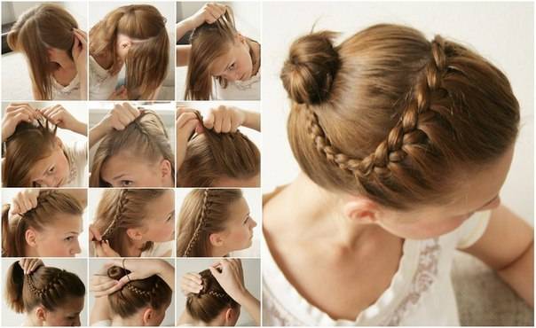 - завершает прическу обыкновенная коса или хвостик, кончик которой можно замаскировать в готовой прическе.