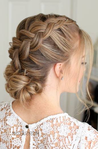 Еще один вариант — вывернутый хвост с косами. Такая прическа не только откроет лицо, но и добавит грации. А косы делают любую заурядную прическу оригинальной. Плетут так: