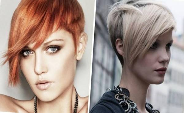 Косые челки рекомендуется оформлять на темных волосах или локонах контрастного оттенка (насыщенного медного, выбеленного пепельного). При этом желательна короткая стрижка.