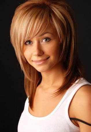 Этот вариант прически основан на том, что на голове создаются пряди разной длины. Чем длиннее волосы, тем слоистее получится укладка. Длинноволосые дамы, которые хотят видеть косую челку, должны внимательно присмотреться к каскаду. Это связано с тем, что он прекрасно сочетается с нервной рваной челкой. Тогда можно будет выгодно обрамлять лицо, а имеющиеся пряди у лица будут сильно выбиваться. Достигается такой результат за счет плавного перехода челки в основную капну волос.